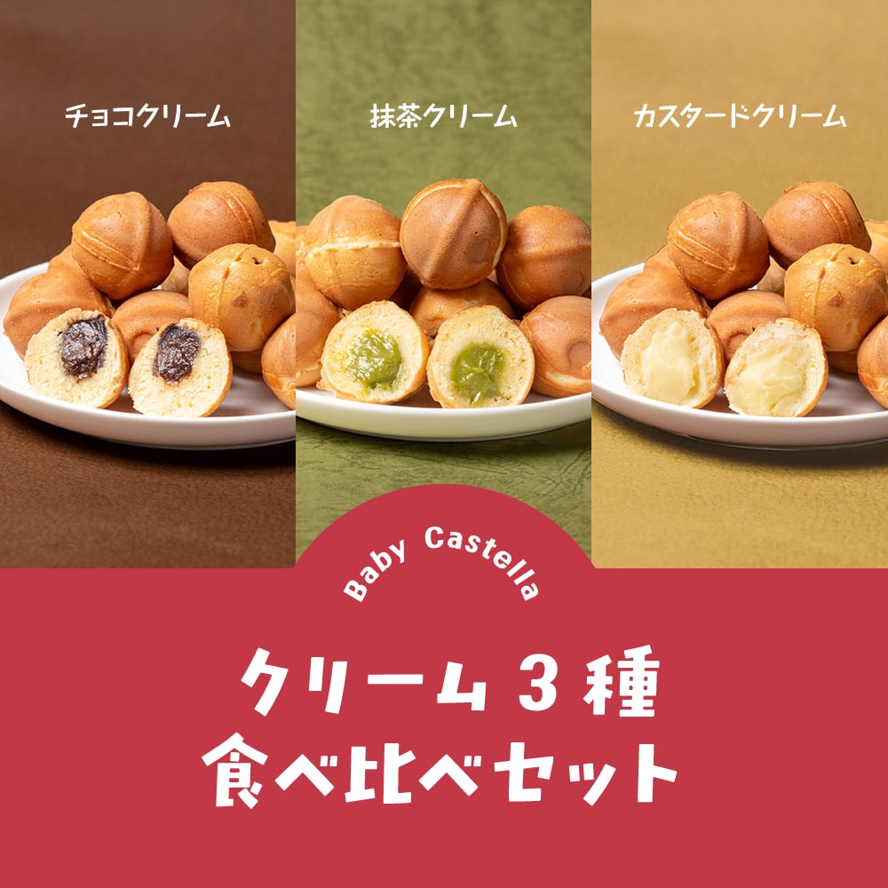 京都すずなり屋 冷凍ベビーカステラ〖クリーム3種食べ比べセット〗(12個入×3袋)自然解凍OK おやつ・お取り寄せスイーツ