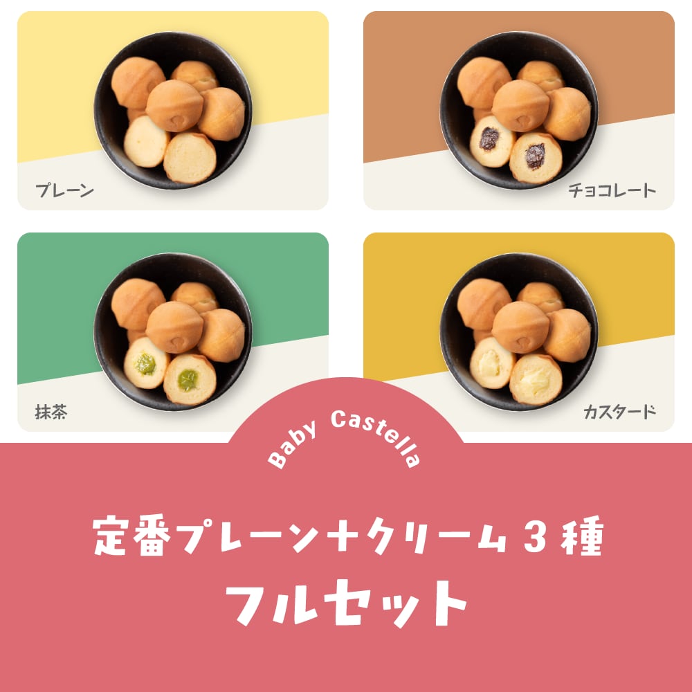 京都すずなり屋 冷凍ベビーカステラ〖フルセット〗(プレーン/12個入×2袋・クリーム3種/12個入×3袋)自然解凍OK おやつ・お取り寄せスイーツ