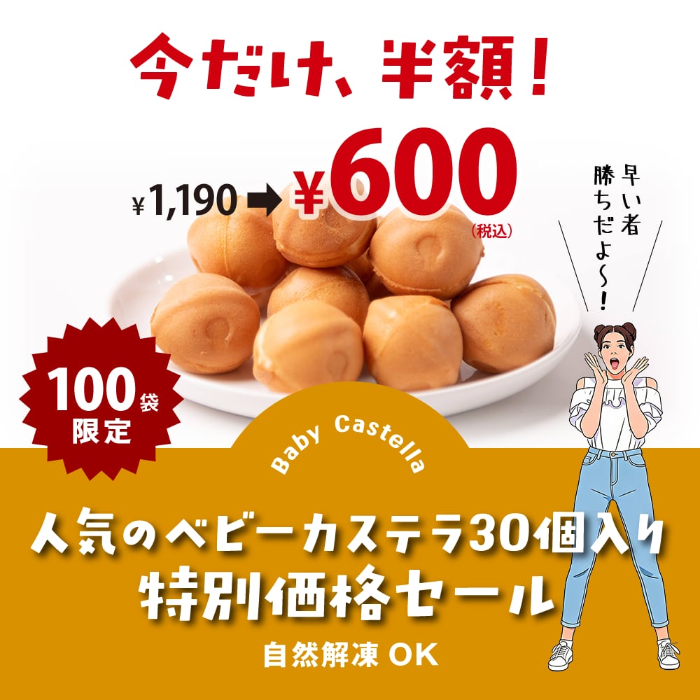 京都すずなり屋 冷凍ベビーカステラ【プレーン30個入】今だけ、半額!特別価格セール|自然解凍でそのまま食べられる お取り寄せスイーツ